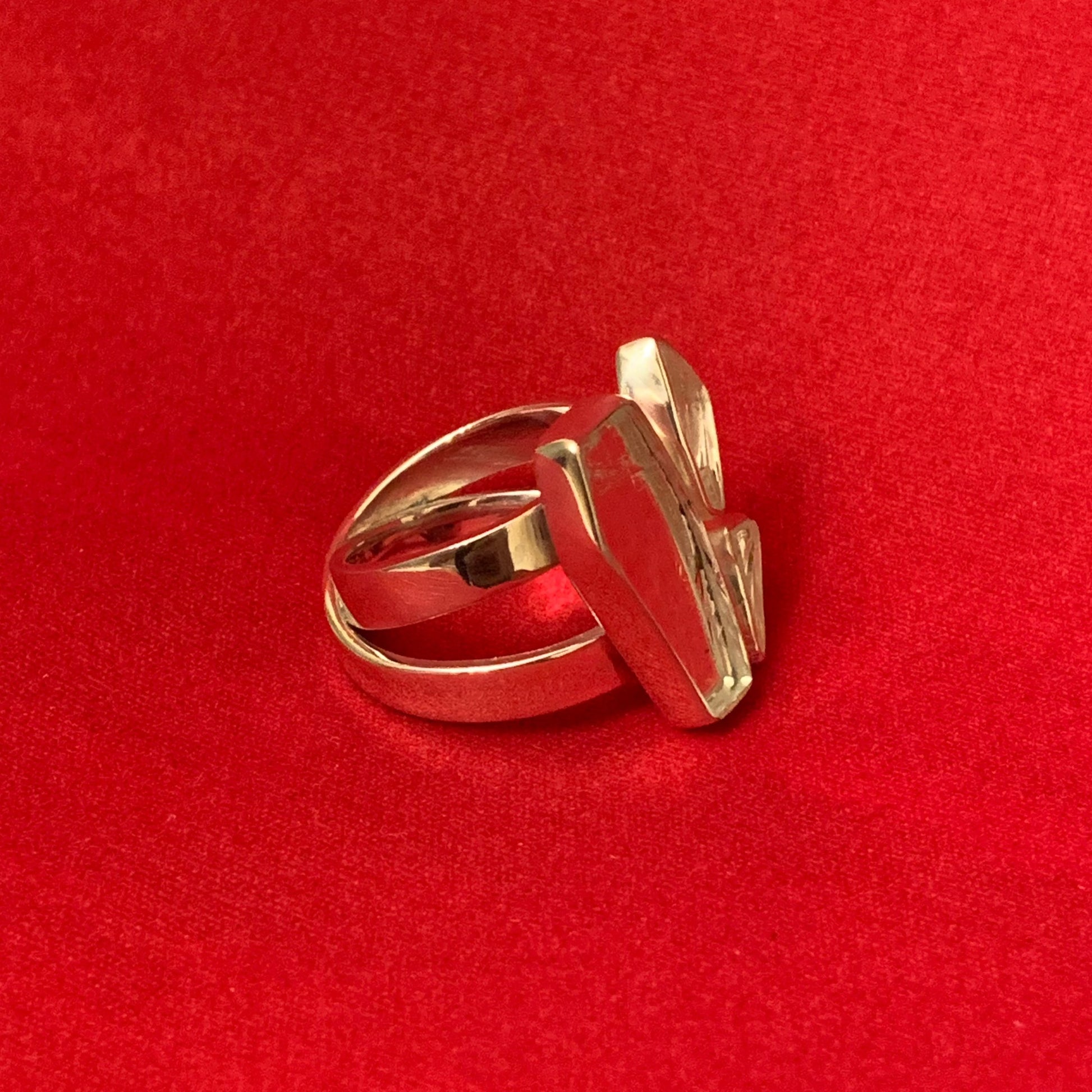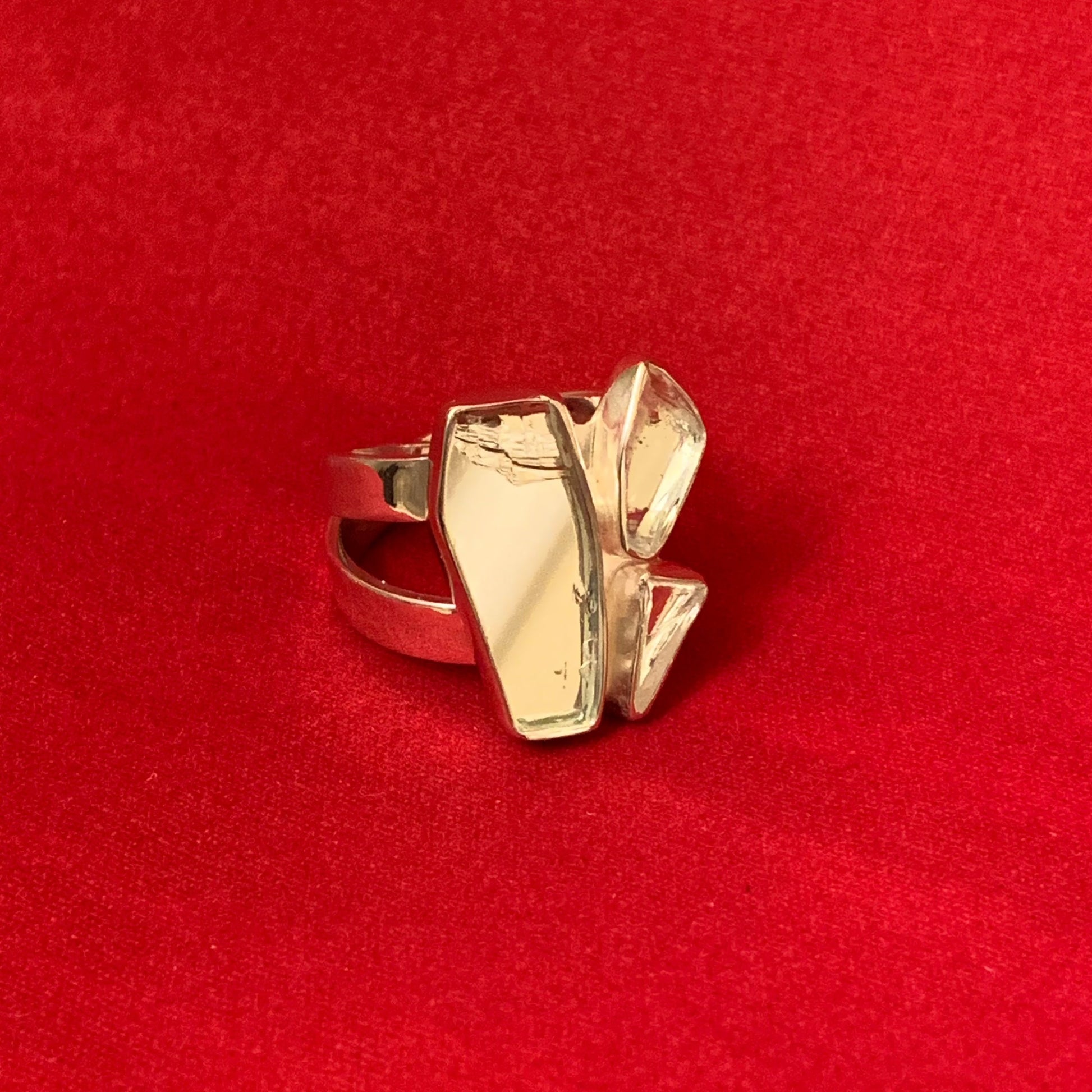 Size 6 | Lightweight crossband ring made with a piece of repurposed mirror wrapped in sterling silver.