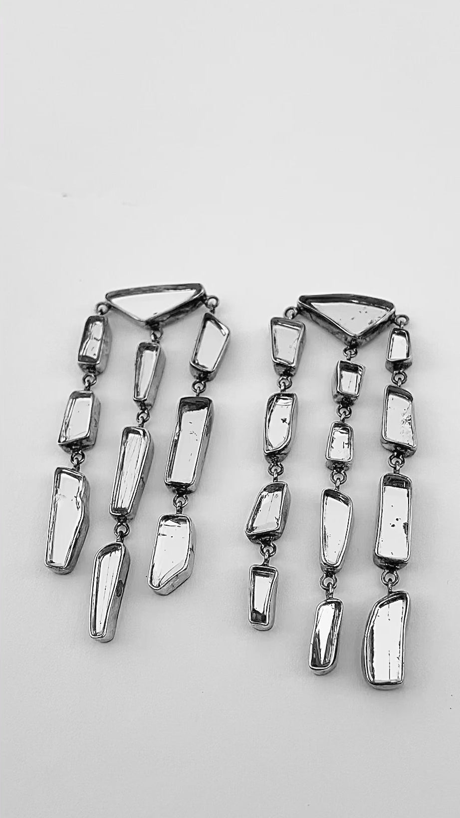 These one-of-a-kind lightweight chandelier earrings are made from repurposed mirror set in sterling silver. Sourced in Bali and redesigned with care and intention, this mirror will continue it's second life with you as a reflection of your light and purpose. Handmade, elegant, durable and sustainable.