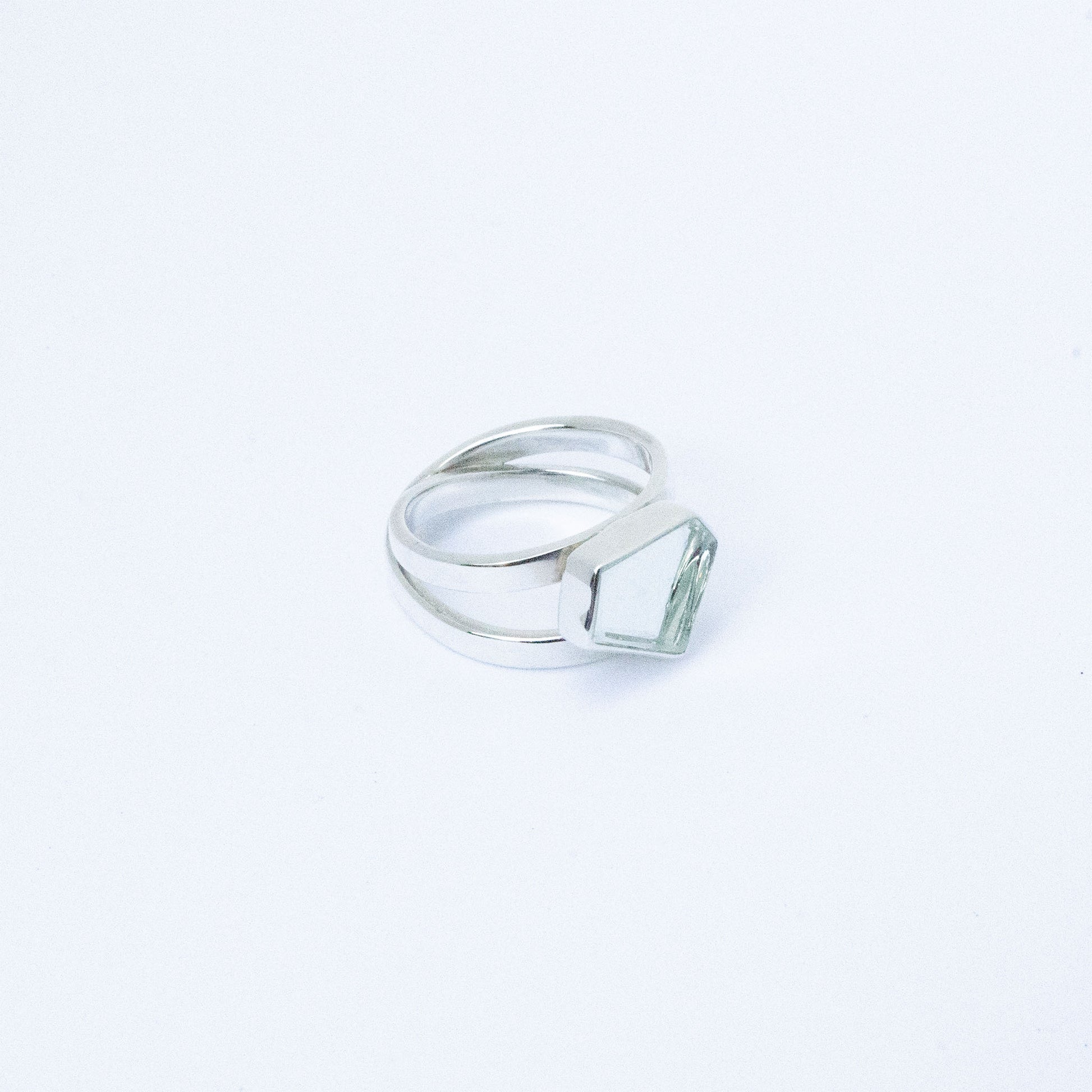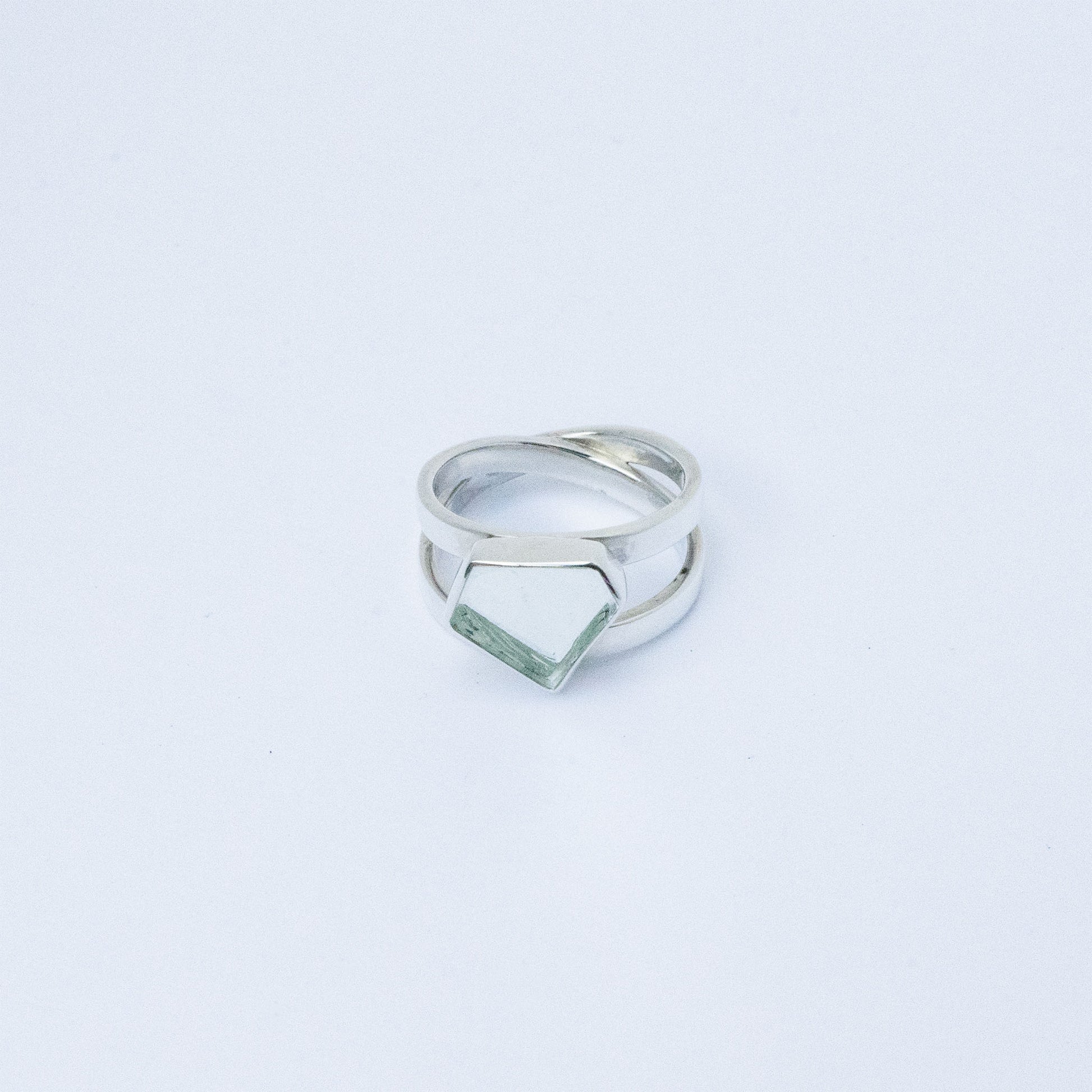 Lightweight crossband ring made with a repurposed mirror piece wrapped in sterling silver. Our mirror rings are the perfect accessory to any outfit. With this design you can discreetly check yourself and your surroundings in the reflection by simply holding your hand up. So go ahead and flaunt your light, love!